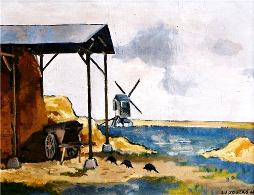 Soulas est avant tout un buriniste, mais, comme beaucoup d’artistes, il s’adonne à la peinture pendant ses moments de détente. Il réalise ainsi de nombreuses gouaches en même temps que des huiles sur toile, dont quelques unes sont présentées ici.